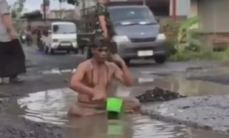 Viral Kades Bonder Mandi Lumpur di Jalan Rusak karena Mumet