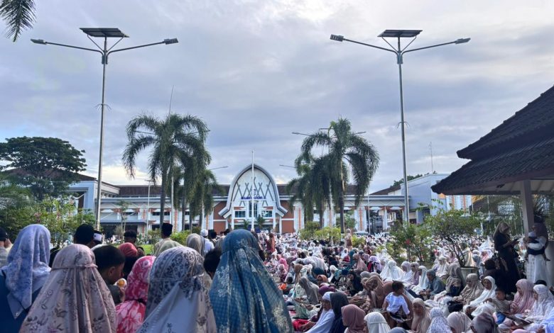 Mataram (NTBSatu) – Puluhan ribu umat Muslim di Kota Mataram memadati area Kantor Gubernur Nusa Tenggara Barat (NTB) untuk melaksanakan ibadah Salat Idulfitri 1 Syawal 1447 Hijriah, Sabtu, 21 Maret 2026.